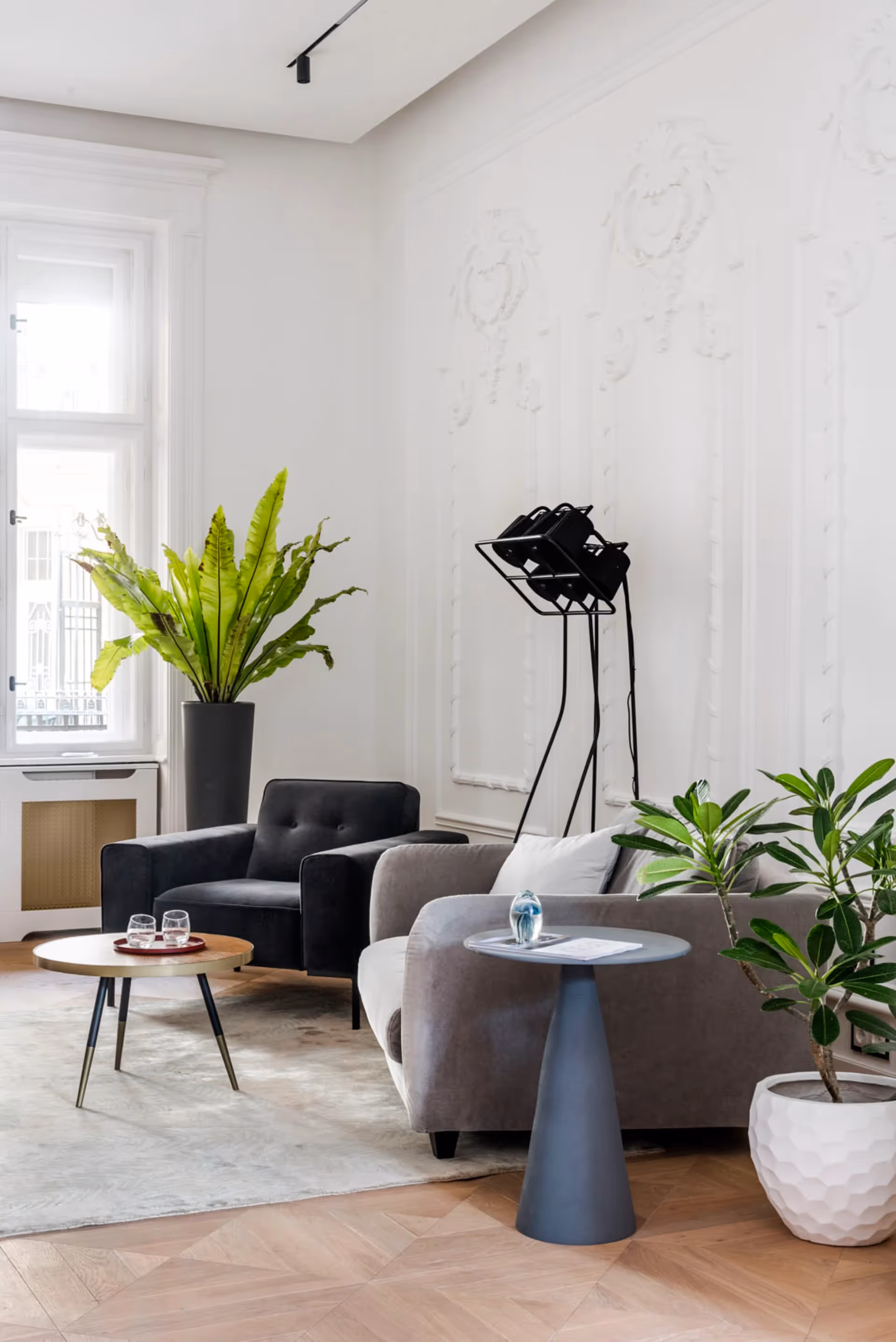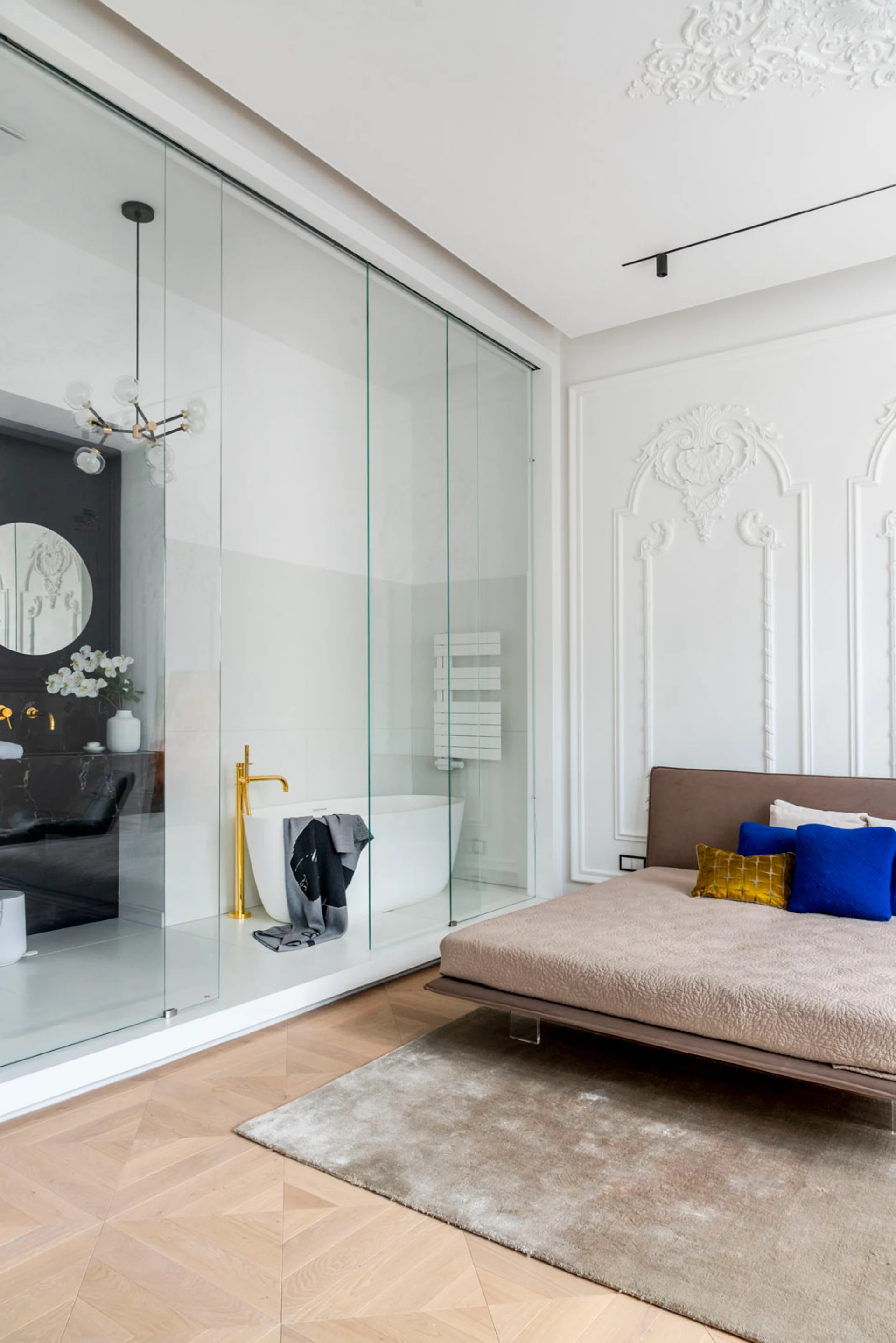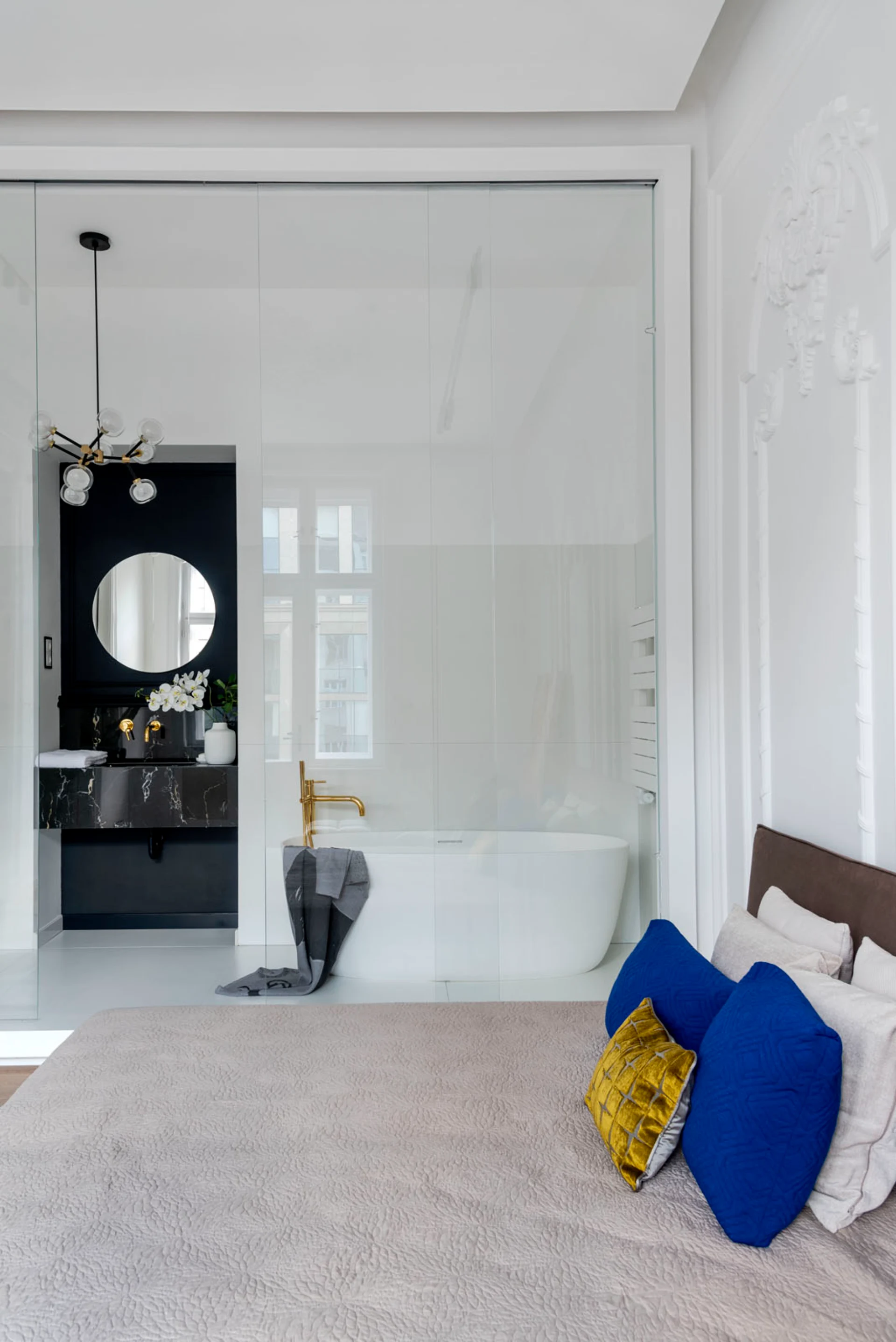 Az 53 m²‑es amerikai konyhás nappali a lakás szíve: csúcskategóriás beépített gépek, márvány munkapult és elegáns szigetpult teszi ideálissá reprezentatív fogadásokhoz és családi összejövetelekhez egyaránt. Három tágas hálószoba mindegyike saját, padlófűtéses fürdőszobával rendelkezik; a walk‑in zuhanykabinok és a prémium szaniterek garantálják a mindennapi luxust. A déli tájolású erkély csendes utcára néz, a 320 cm‑es belmagasság és a nagy ablakfelületek pedig egész nap természetes fényben fürdetik a tereket.