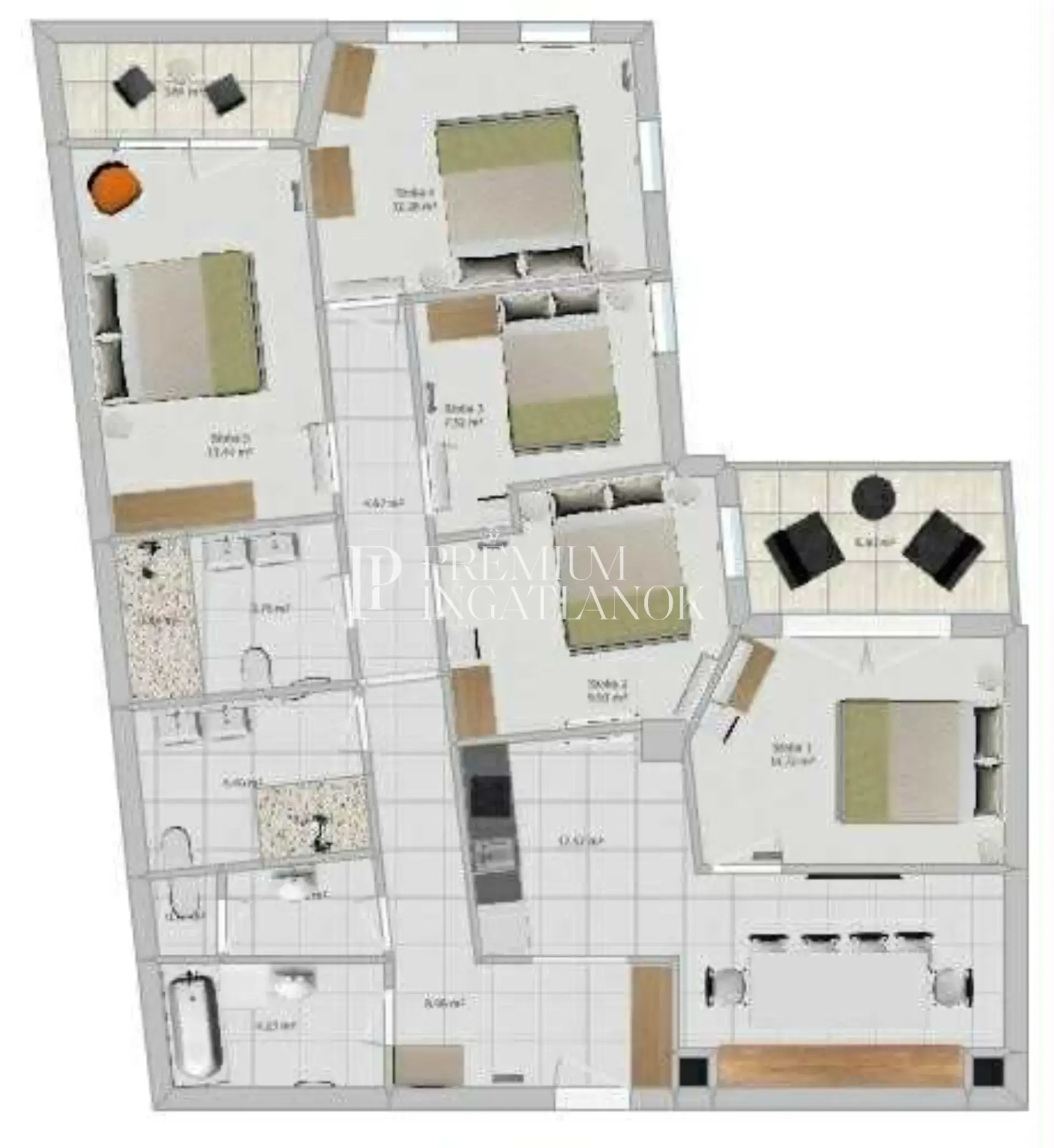 5 tágas, külön nyíló hálószoba