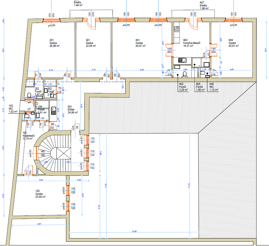 - Alapterület: 214 m² (ténylegesen 218 m²)