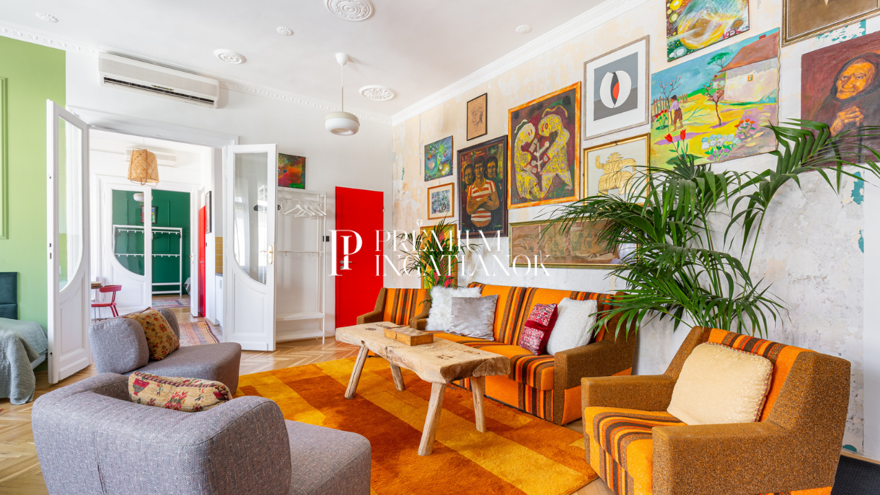 Eladásra kínálunk Budapest szívében, a patinás Palotanegyedben egy 214 m²-es (valóságban 218 m²) exkluzív ingatlant. Az egyirányú utcában, az Uránia Filmszínház közvetlen közelében található ingatlan csendes, mégis pár lépésre van a belváros kulturális és üzleti központjaitól. Lokációja kiváló, így egyszerre élvezhető a nyugodt környezet és a belvárosi elhelyezkedés összes előnye.