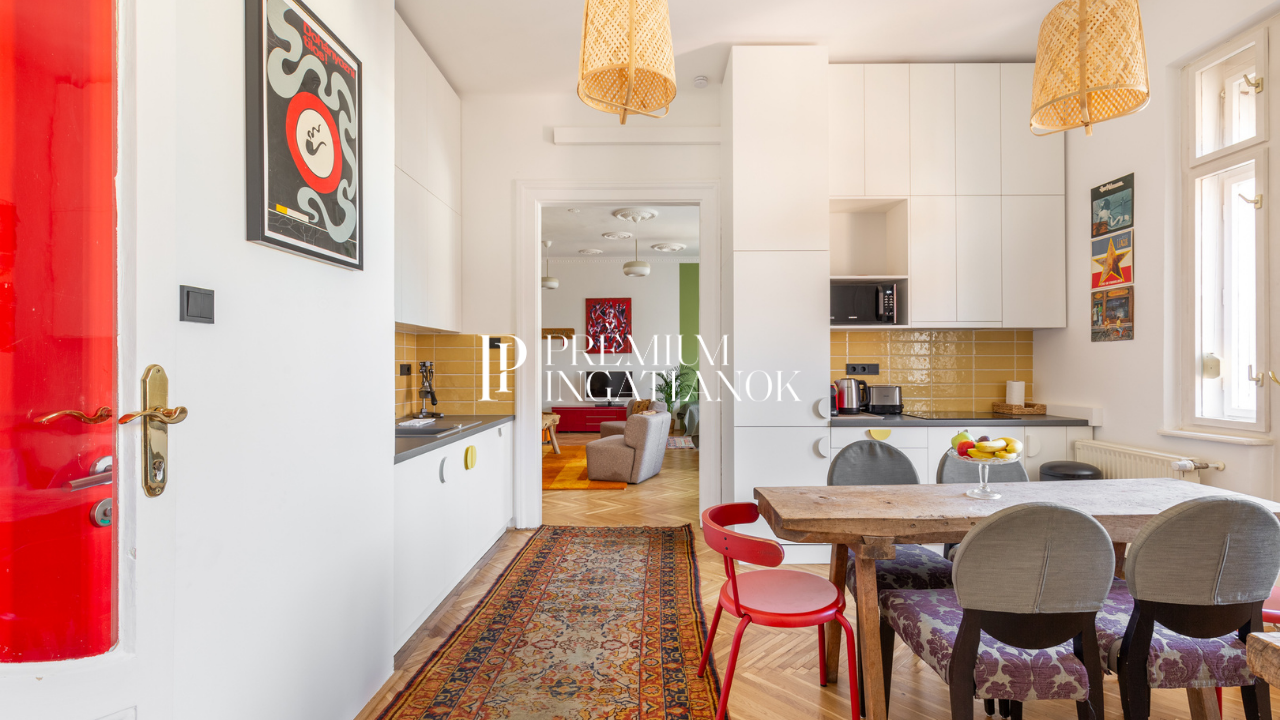 - Lokáció: Budapest VIII. kerület, Palotanegyed – csendes, egyirányú utca, kiváló tömegközlekedés és infrastruktúra a közelben