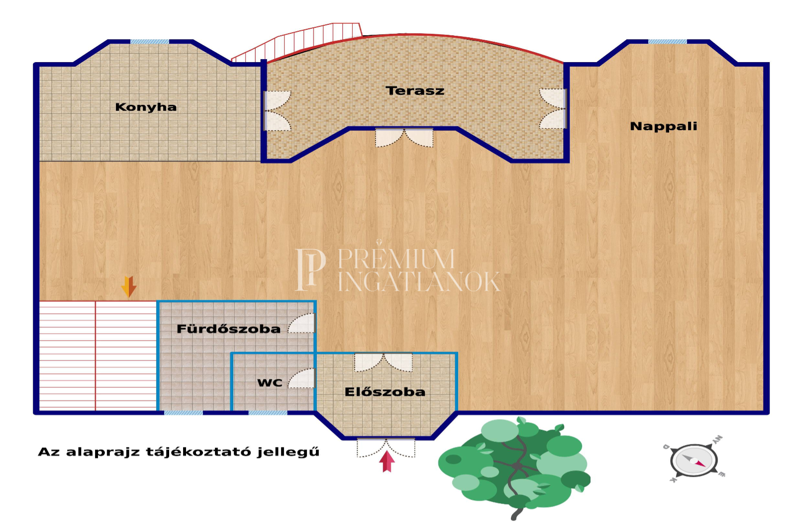 A földszinten előszobát találunk, onnan nyílik egy vendég WC kézmosóval majd az előtérbe jutunk.