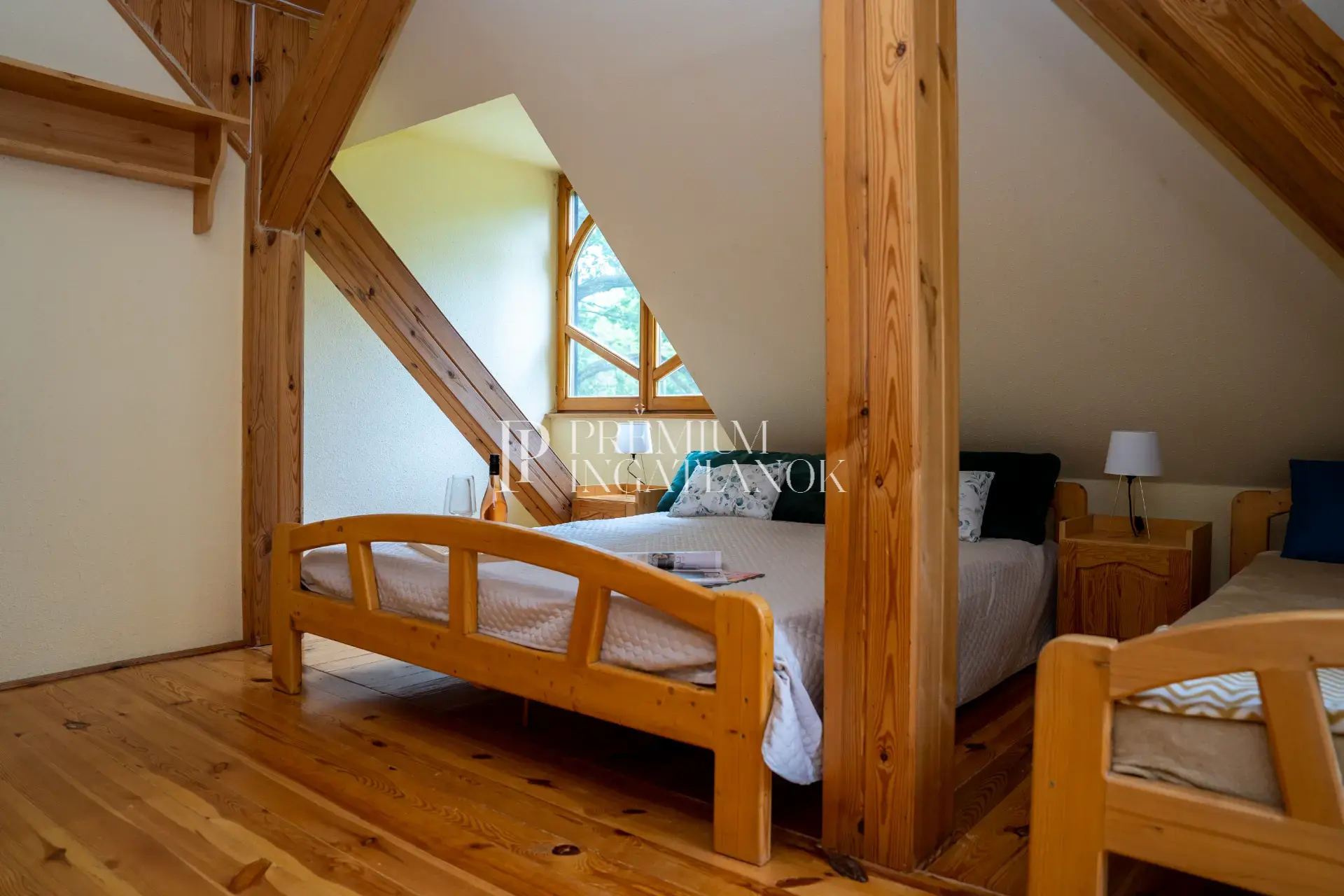 - Földszint – A közösségi élettér: A fókuszpont a lenyűgöző, 80 négyzetméteres, monumentális belmagasságú szalon, melyet egy masszív épített kandalló és antik enteriőr ural. Ehhez kapcsolódik a hatalmas üvegfelületekkel határolt télikert, valamint három külön bejáratú, tágas szoba és egy praktikus, stílushű cottage-stílusú konyha.