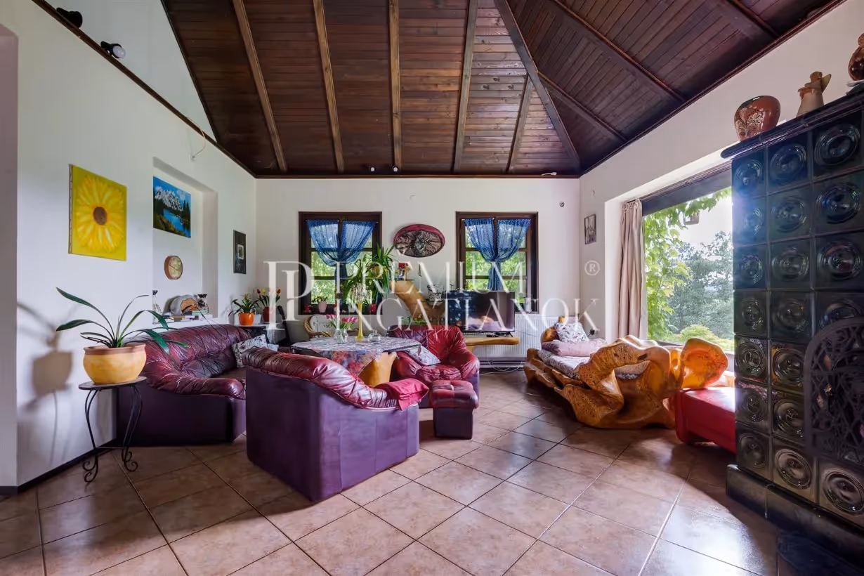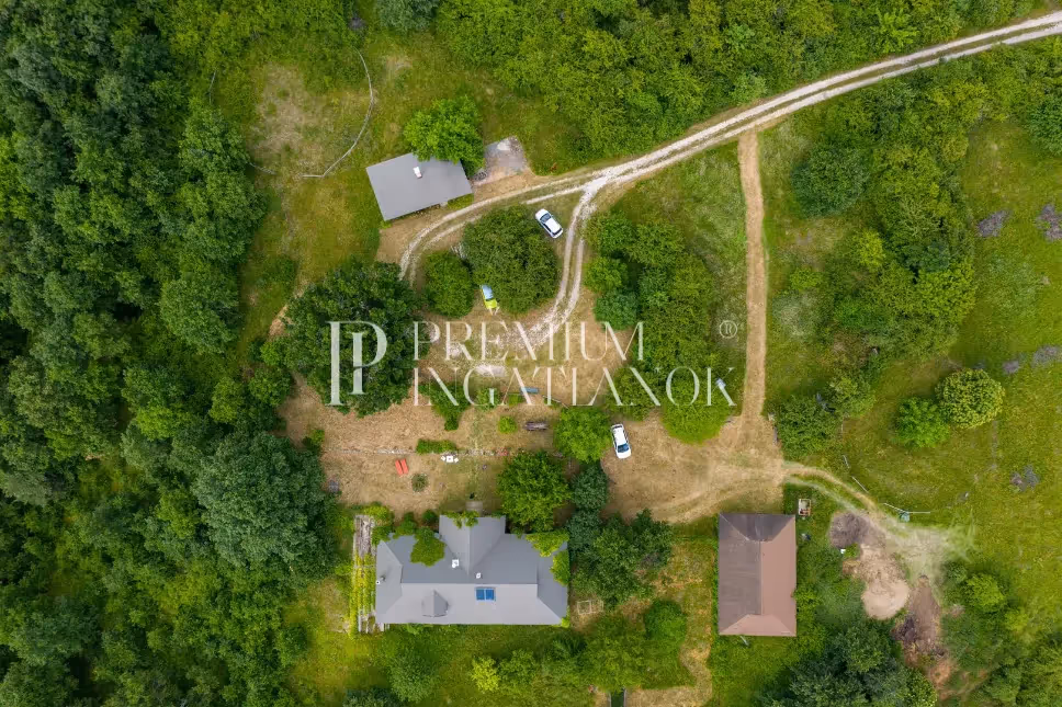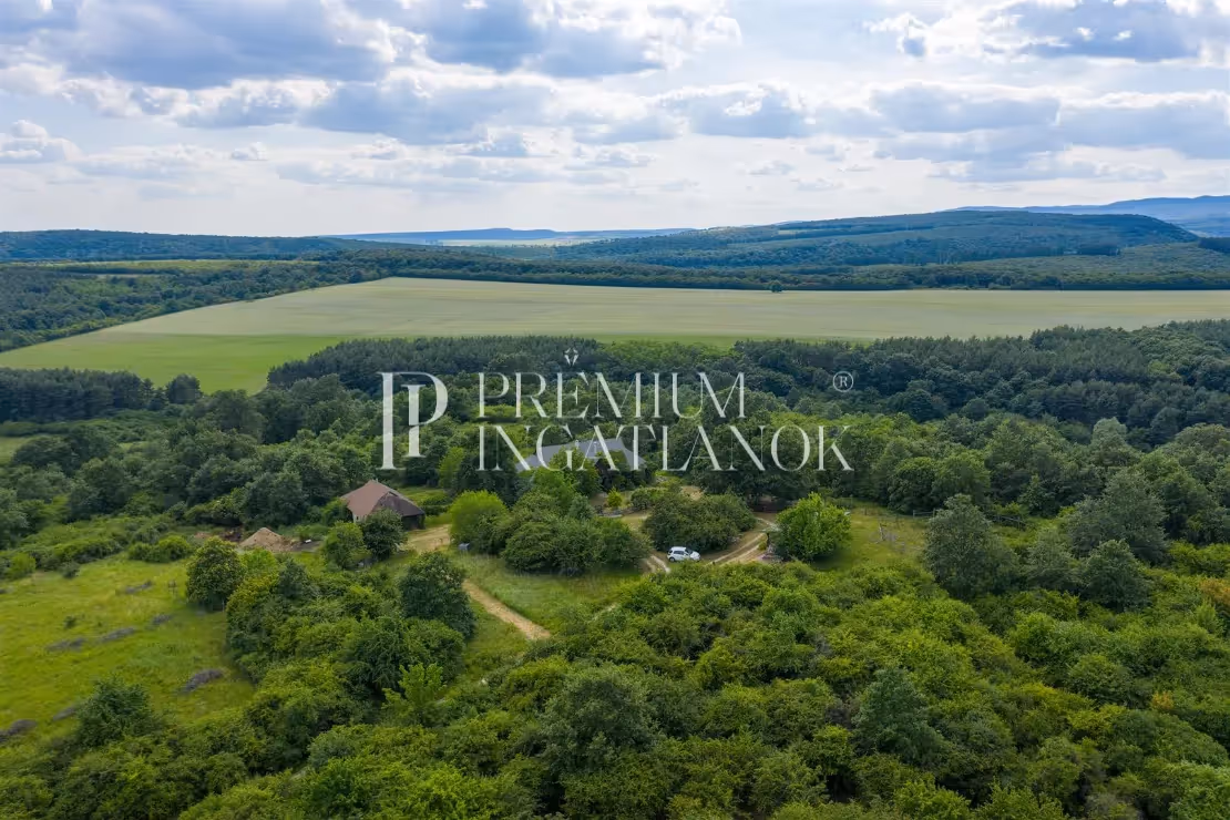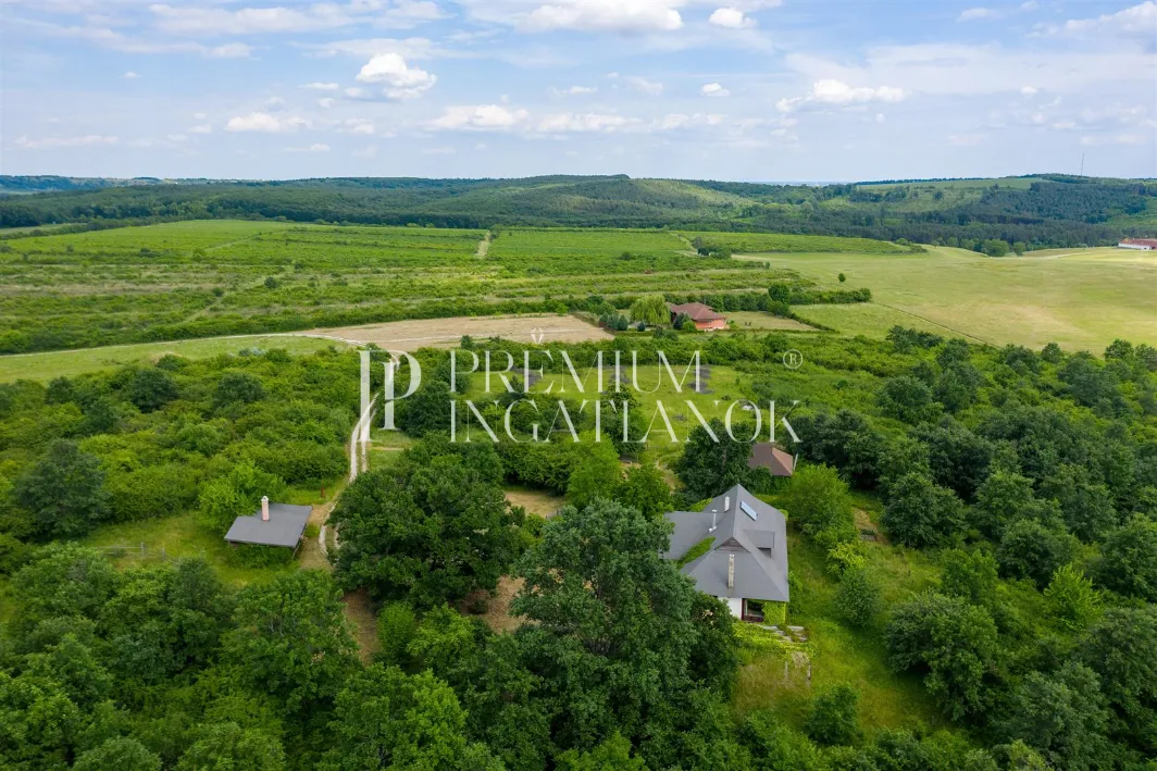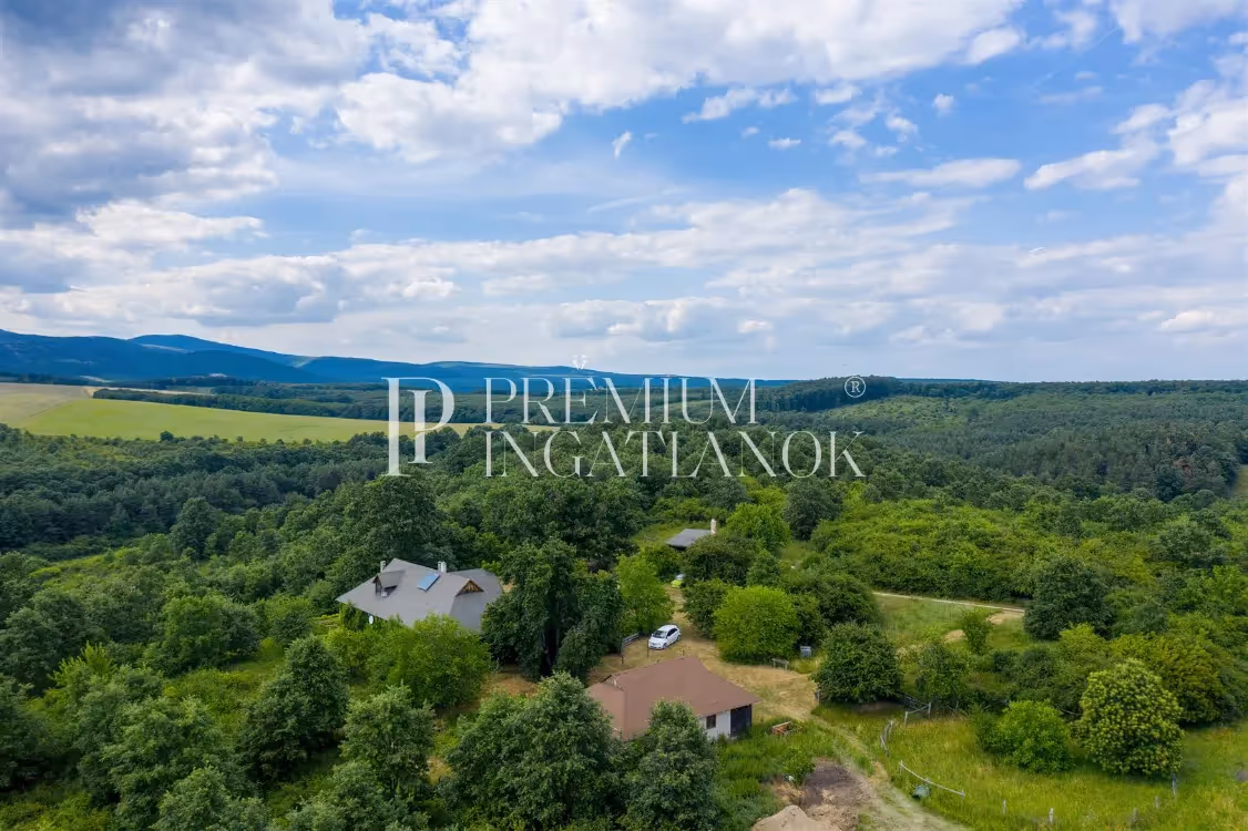 lakóházzal, kiszolgáló épületekkel a Bükk lábánál. Bájos, lankás oázis