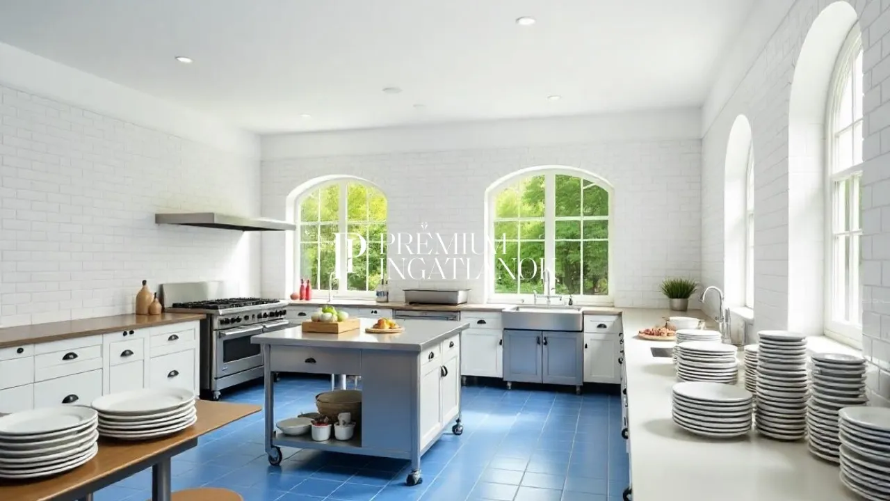 Az étterem, egy HACCP – ( uniós ) norma rendszer szerint üzemelő konyha (teljesen felszerelt), egy 80 + 40 + 80 = 200 – fős étterem, terasszal, mosdókkal, öltözőkkel és tároló helységekkel.