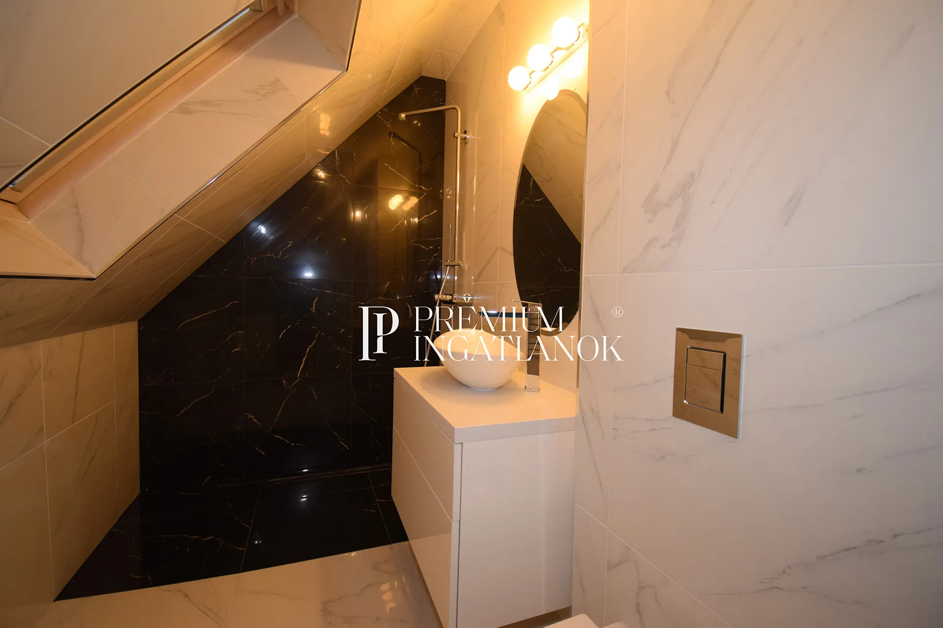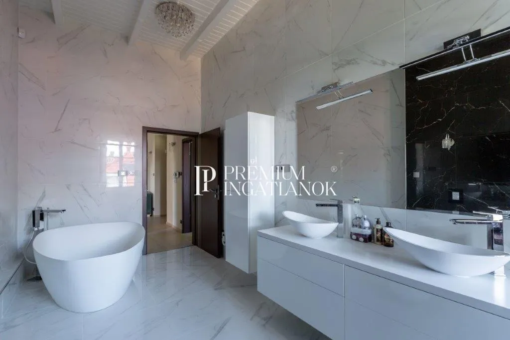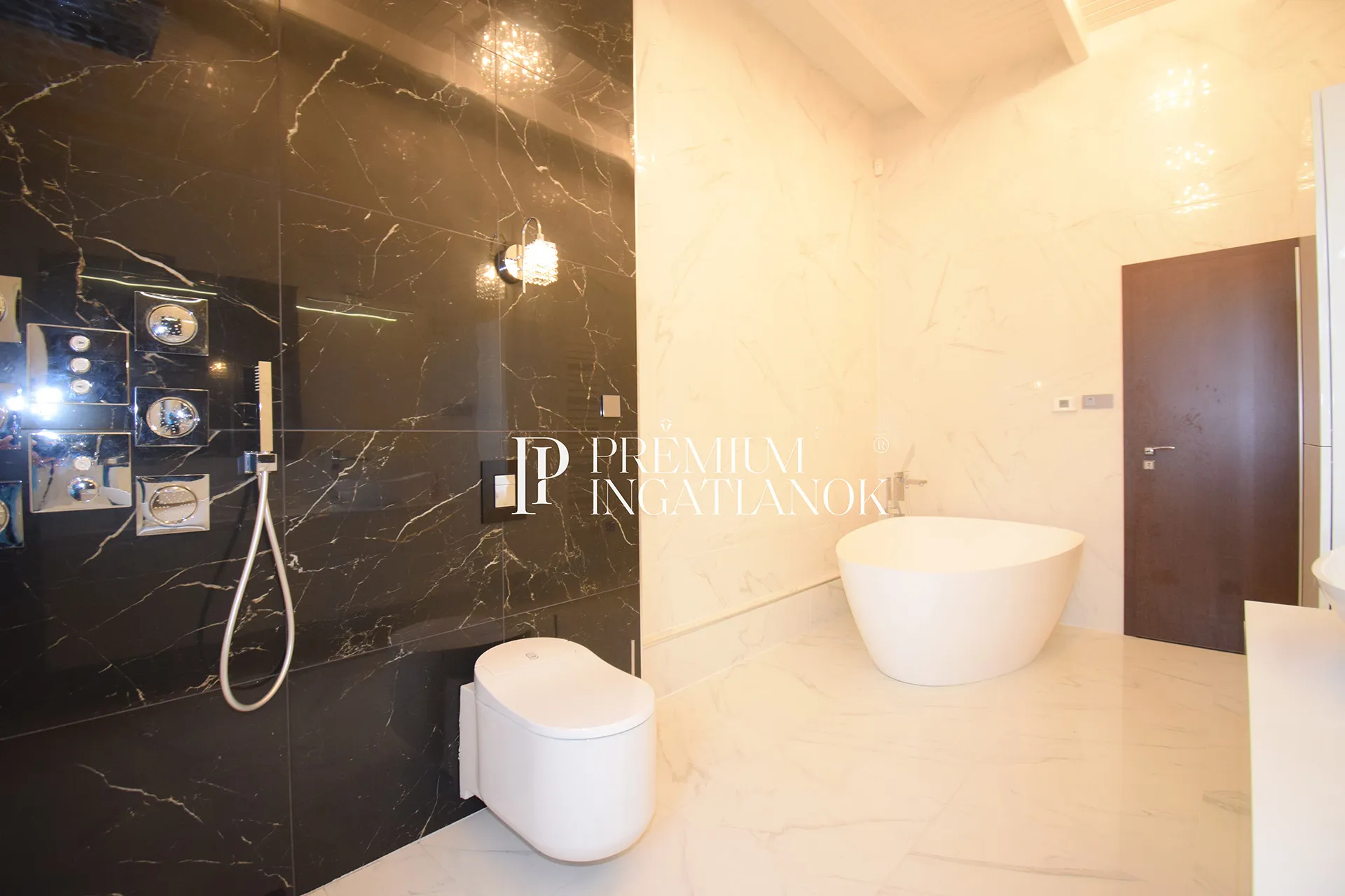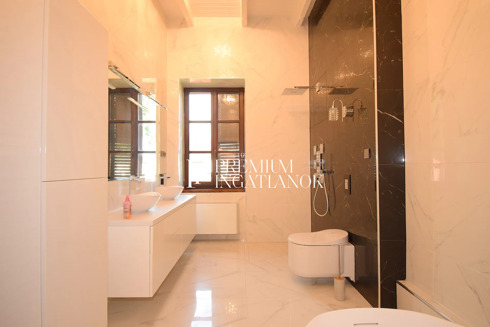 luxus gépészet, az okosotthon távfelügyelet, az olasz burkolatok, a konyhasziget és beépített bútorok, szaniterek, prémium konyhai gépesítettség és sok modern