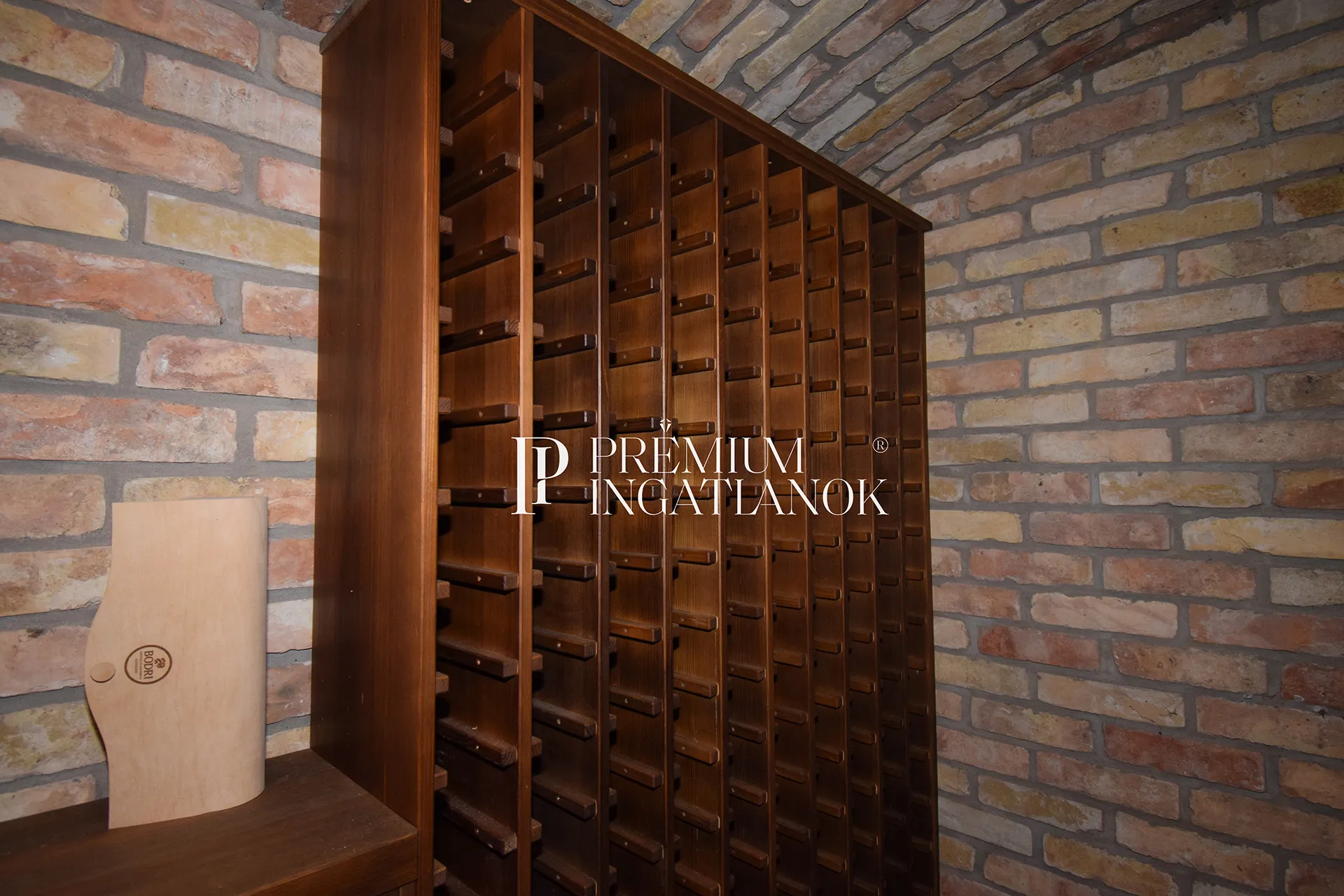 6 lakószobájához 3 fürdőszoba és számos kiszolgáló helyiség kapcsolódik. Tetőterében játékszoba, pincéjében borozó fokozza a pihenés élményét.