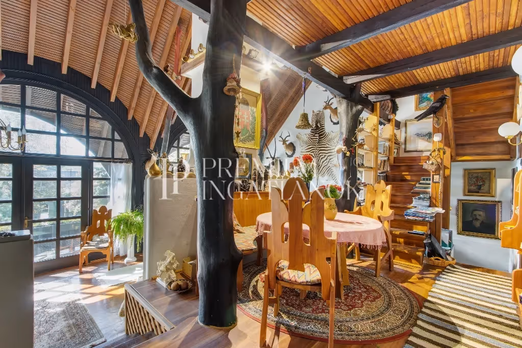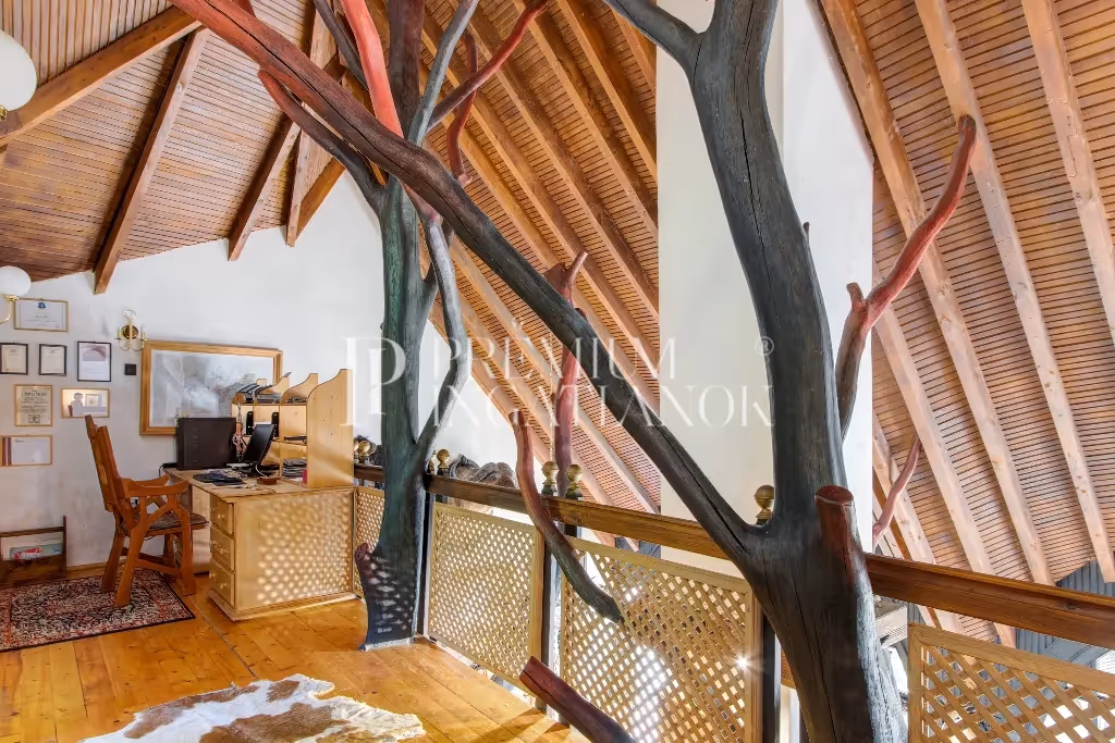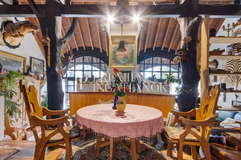 A Mátraalján, Recsken található ingatlant a magyar organikus építészet megteremtője, Makovecz Imre építész álmodta és tervezte meg. Kiváló elhelyezkedése az erdős-dombos vidék ölelésében lehetővé teszi a kikapcsolódást, továbbá a vadászat szerelmeseinek hatalmas területtel kedvez, melynek állatvilága kis- és nagyvadakban gazdag, igazi vadászparadicsom.
