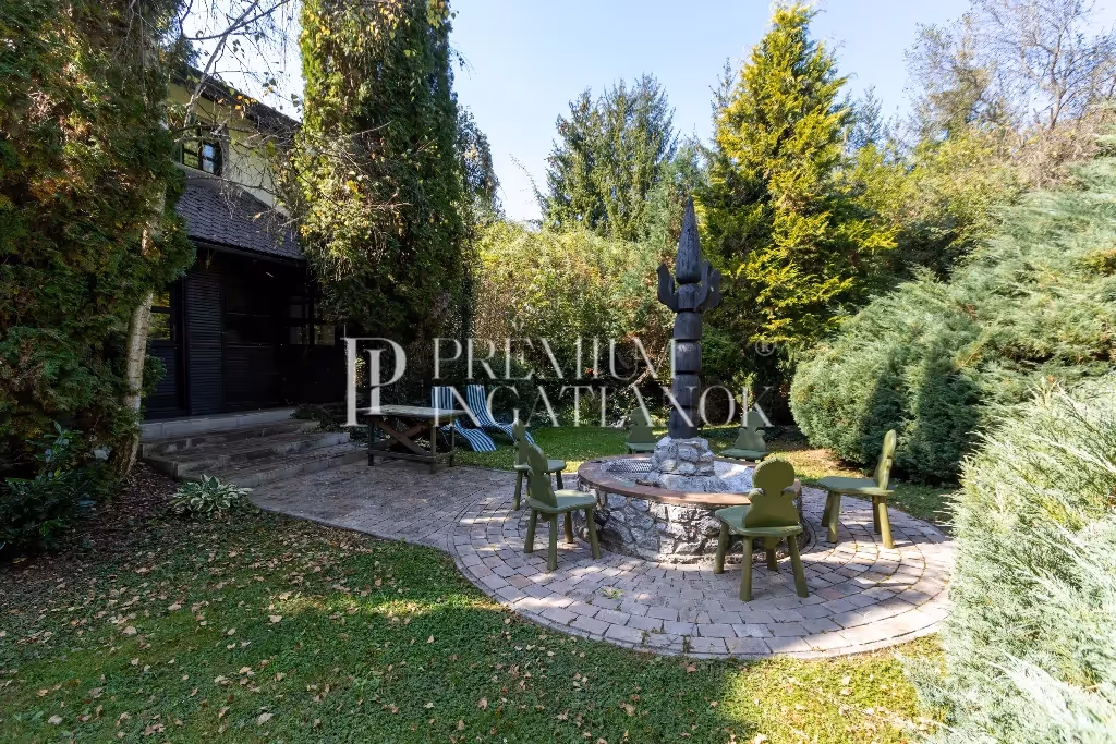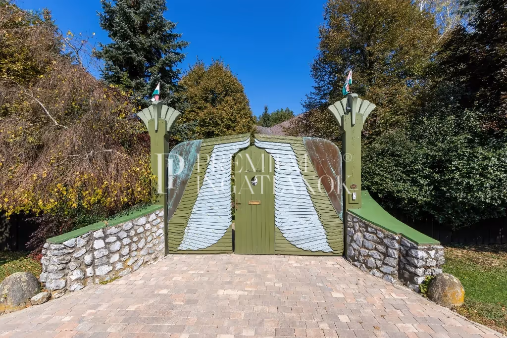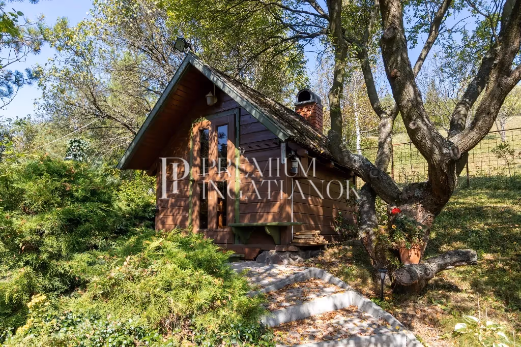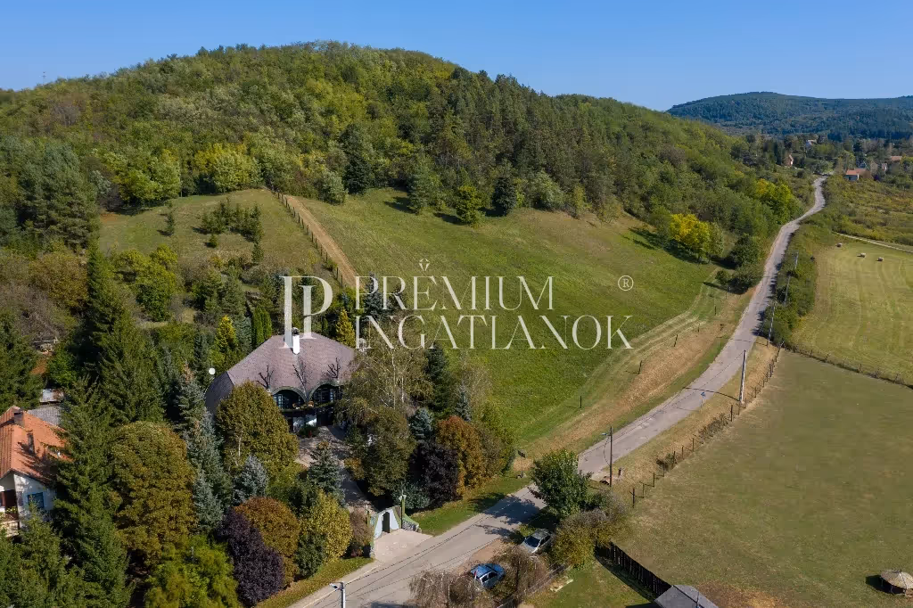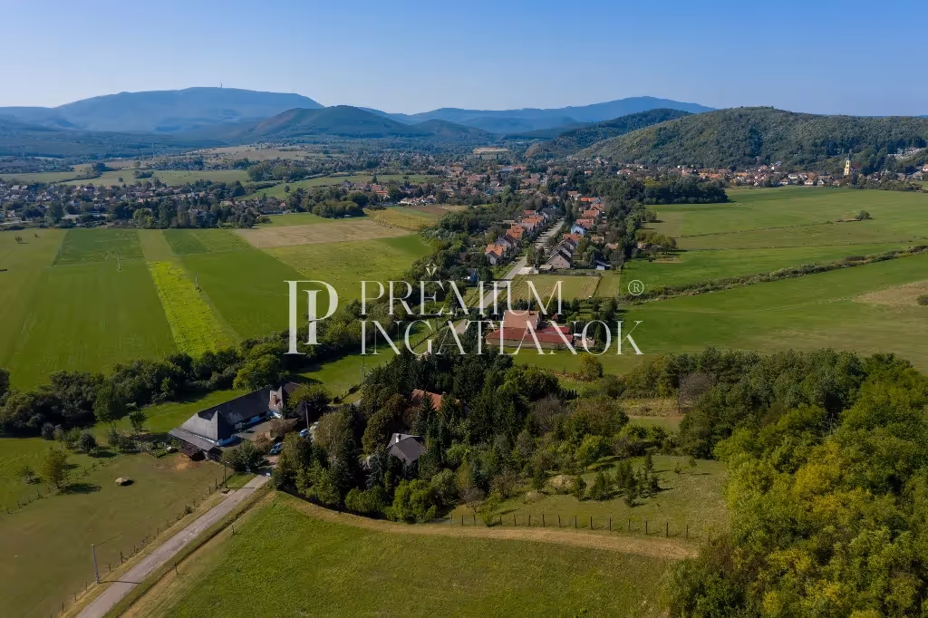 Az ingatlan 2111 nm összközműves telekre épült, közvetlenül a Recski Nemzeti Emlékpark közelében, így kiváló turisztikai befektetésnek is. A ház igazi kuriózum, melyben 4 szoba, Sárkány Kata iparművész cserépkályhája és Koch Árpád fafaragó művész munkái is helyt kaptak. A teljesen körülkerített, fákkal körbeölelt telken található még szaunaház, illetve egy kővel kirakott, térkövezett, díszes, kültéri sütögetőhely. Természetes növényzetét cseres tölgyesek alkotják.