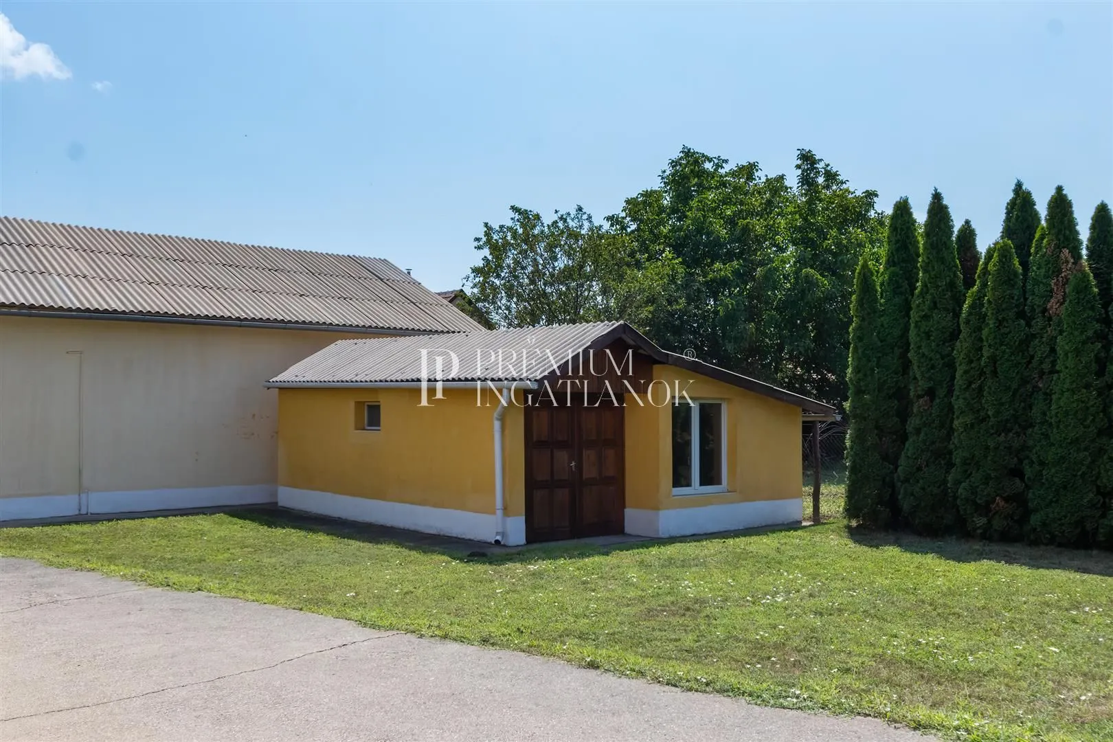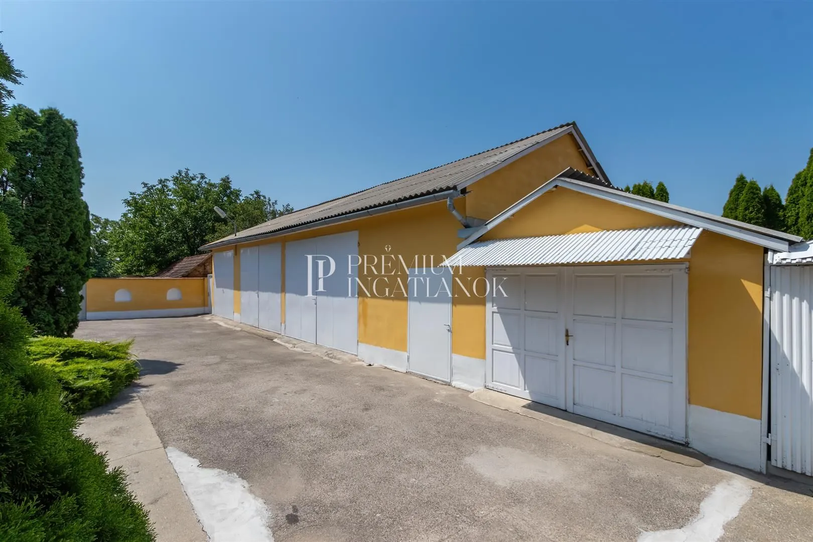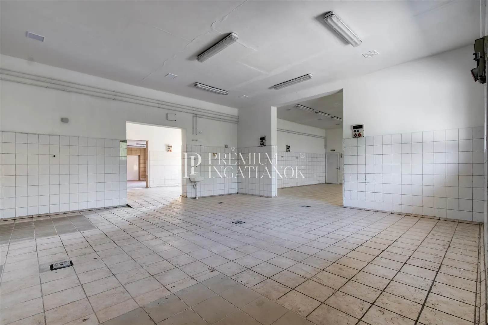 Az ipari ingatlan több részből áll és több irányból bejárható: összesen 1000 m2 összterületű ipari árammal ellátott összefüggő üzemépületet bejáróval, udvarral, felcsempézett üzem, raktár, 2 nagy és 2 normál raktár, több kisebb tárolóhelyiség, árukiadó épület és az egyik családi ház földszintjén található külön bejáratúmintabolt. A gondozott kertben úszómedence, jakuzzi, Botanikus kert található.