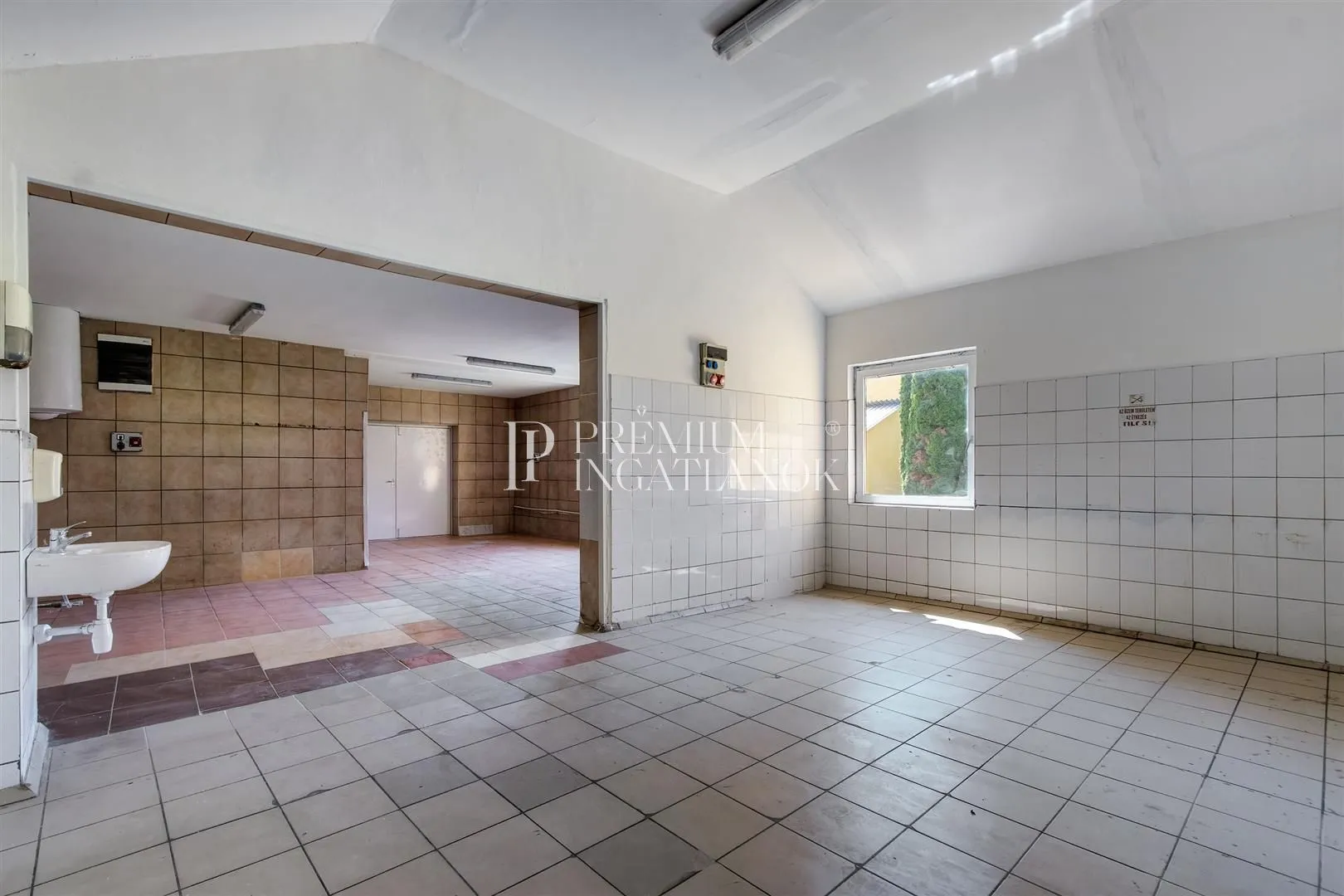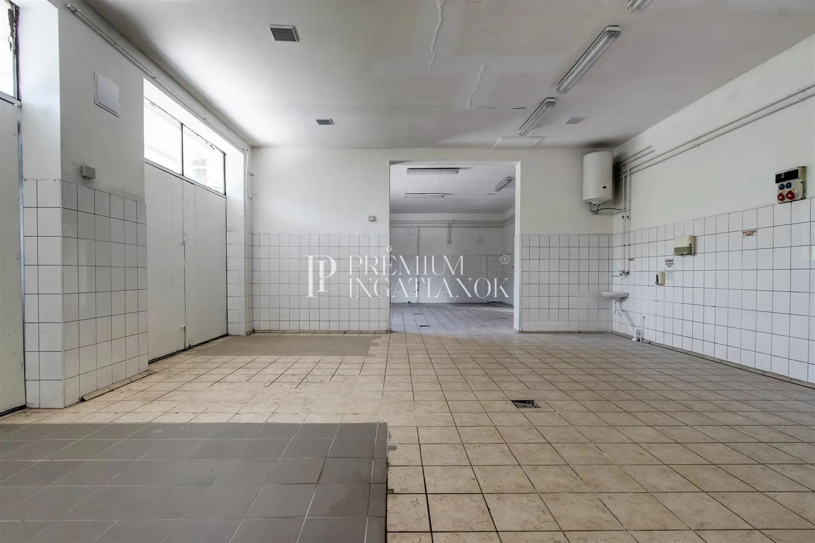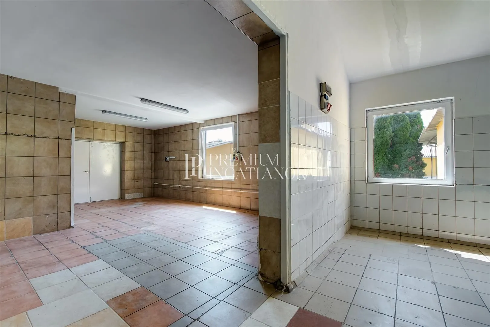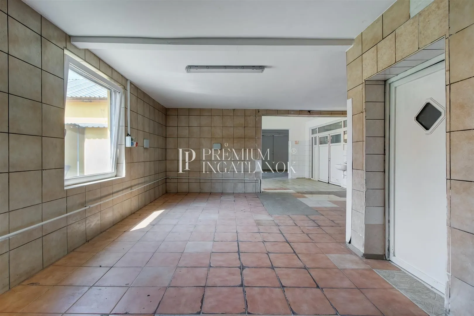 Az ipari ingatlan több részből áll és több irányból bejárható: összesen 1000 m2 összterületű ipari árammal ellátott összefüggő üzemépületet bejáróval, udvarral, felcsempézett üzem, raktár, 2 nagy és 2 normál raktár, több kisebb tárolóhelyiség, árukiadó épület és az egyik családi ház földszintjén található külön bejáratúmintabolt. A gondozott kertben úszómedence, jakuzzi, Botanikus kert található.