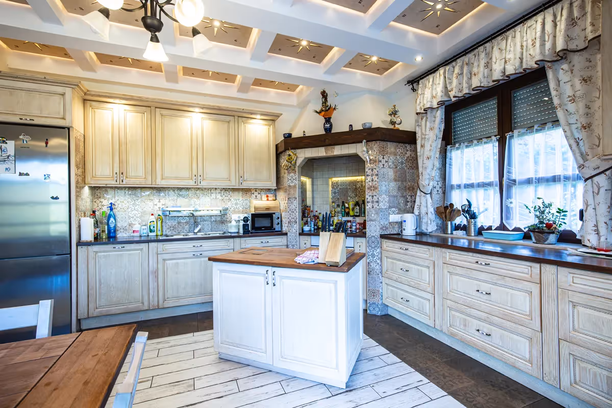Az egész házra a nagyvonalú és ízléses burkolatok,letisztult formák,ugyanakkor a praktikus,jól átgondolt térrendezés jellemző.Tájolásának köszönhetően körbe járja a napfény.